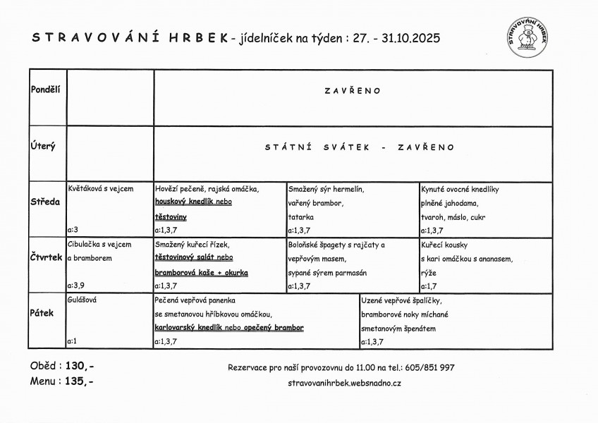 a tudíž není ani rozvoz. Těšíme se na Vás ve středu 29.10.